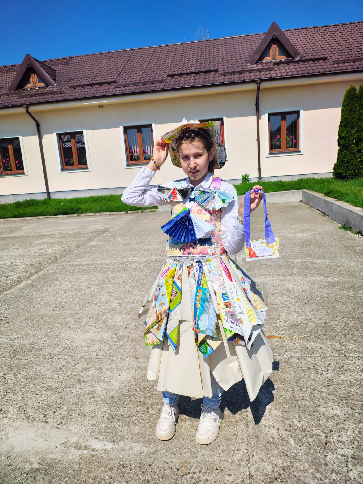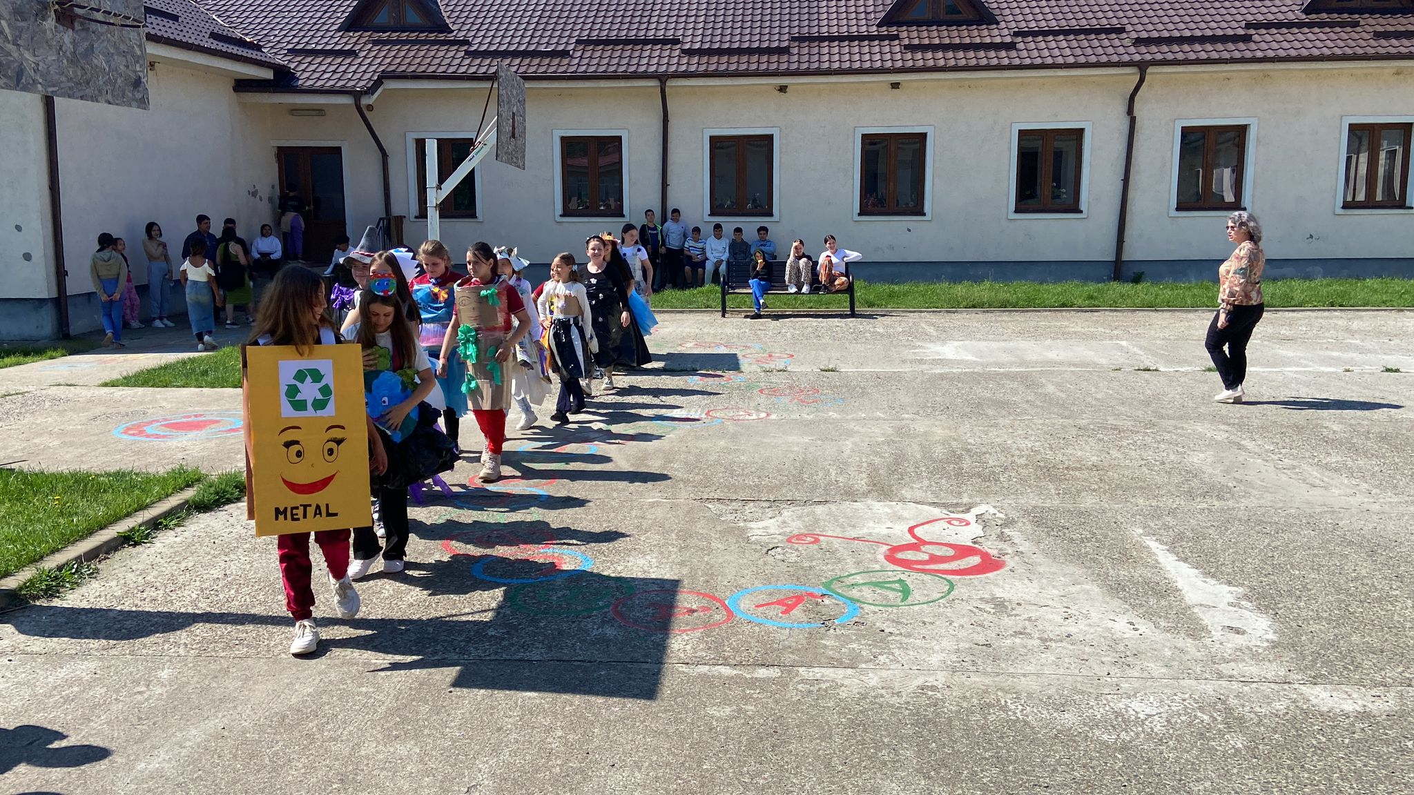 Fiecare clasă a pregătit cu entuziasm costume originale, realizate din ziare, pungi de plastic, carton, capace sau ambalaje diverse. Defilarea a avut loc în curtea școlii, într-o atmosferă de sărbătoare, iar elevii și-au prezentat ținutele eco în fața unui public format din colegi, părinți și cadre didactice.